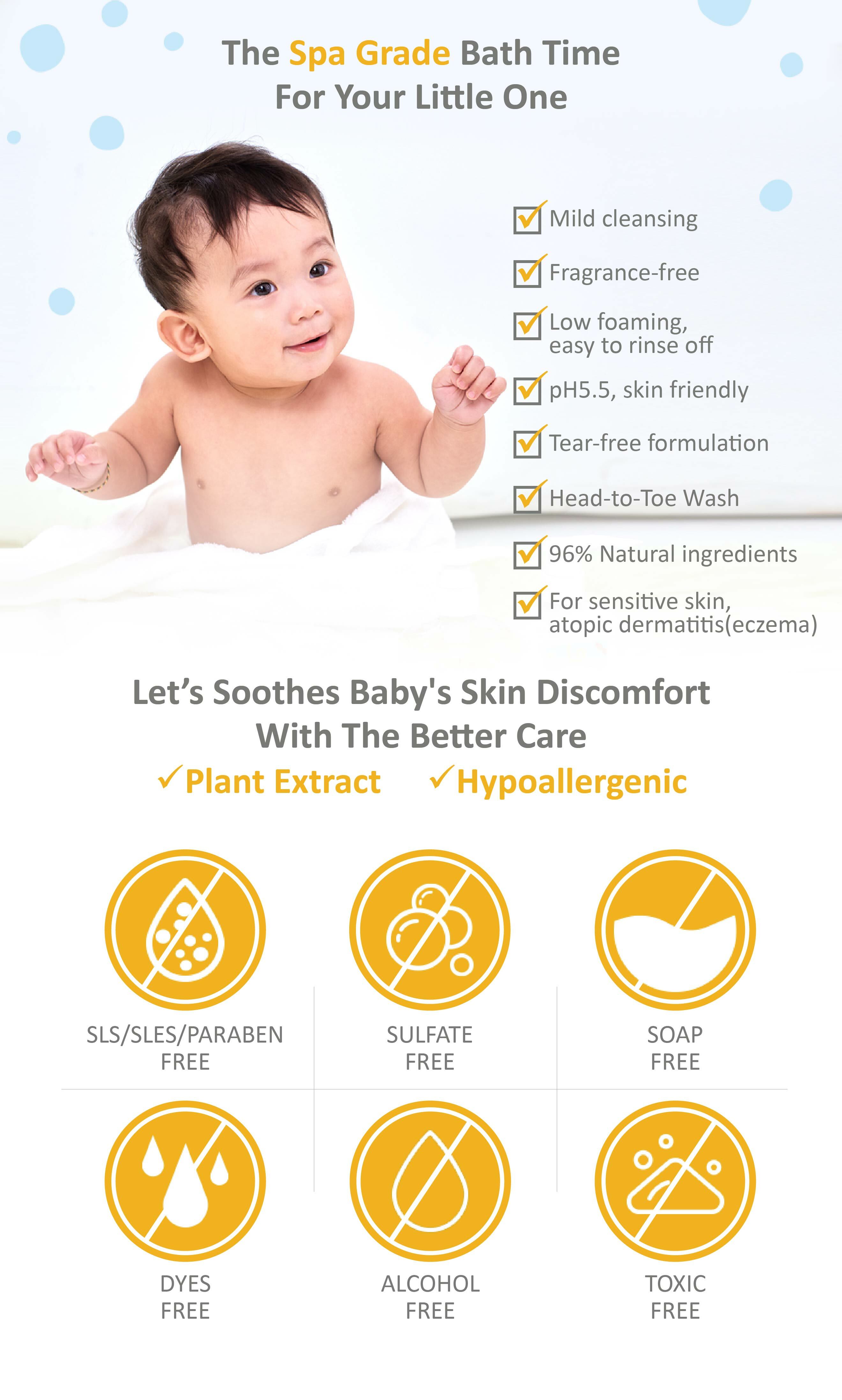-pH5.5 Tear-free formula, Fragrance-FREE, non-irritating