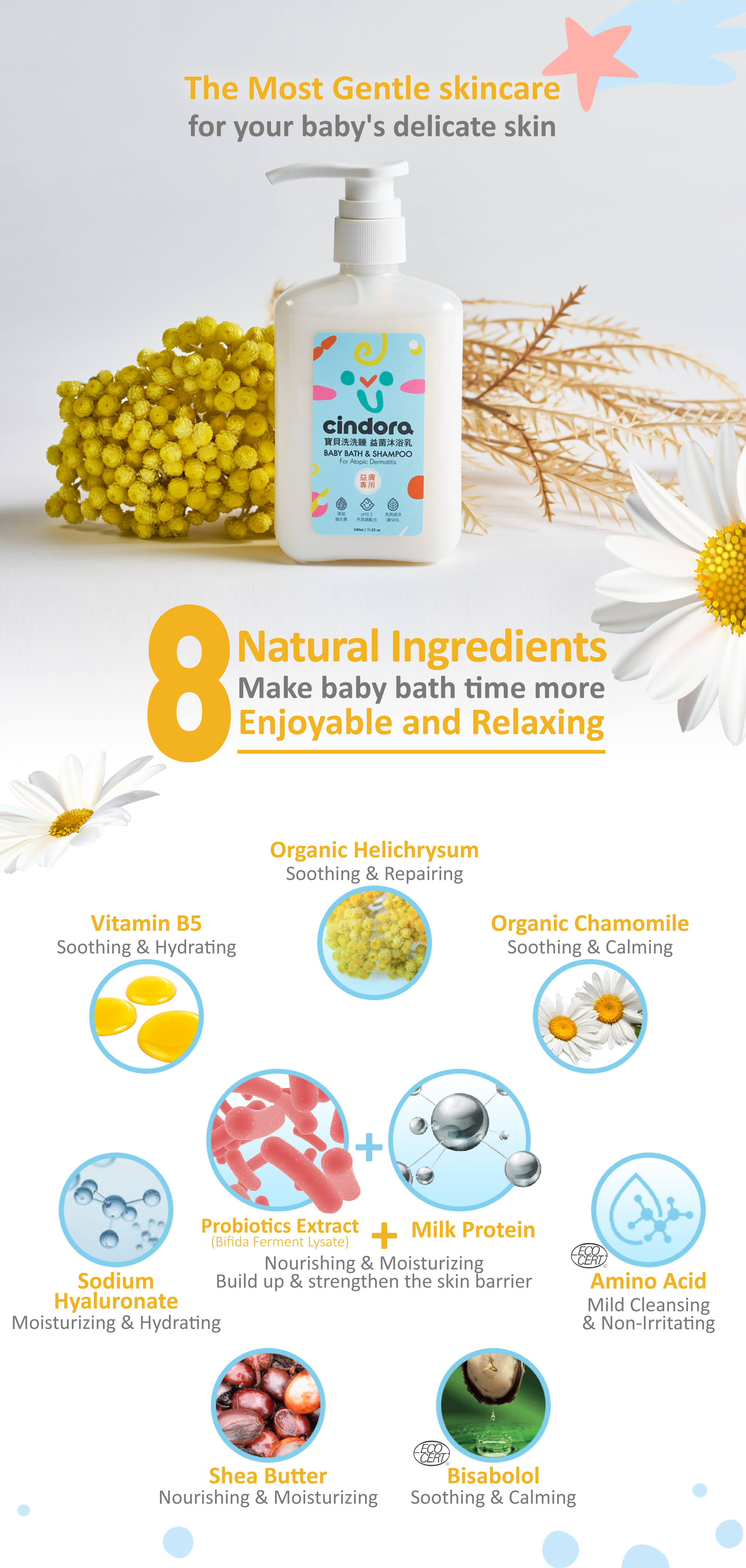 -Added Probiotic & milk protein, nourish and enhance baby's skin defense