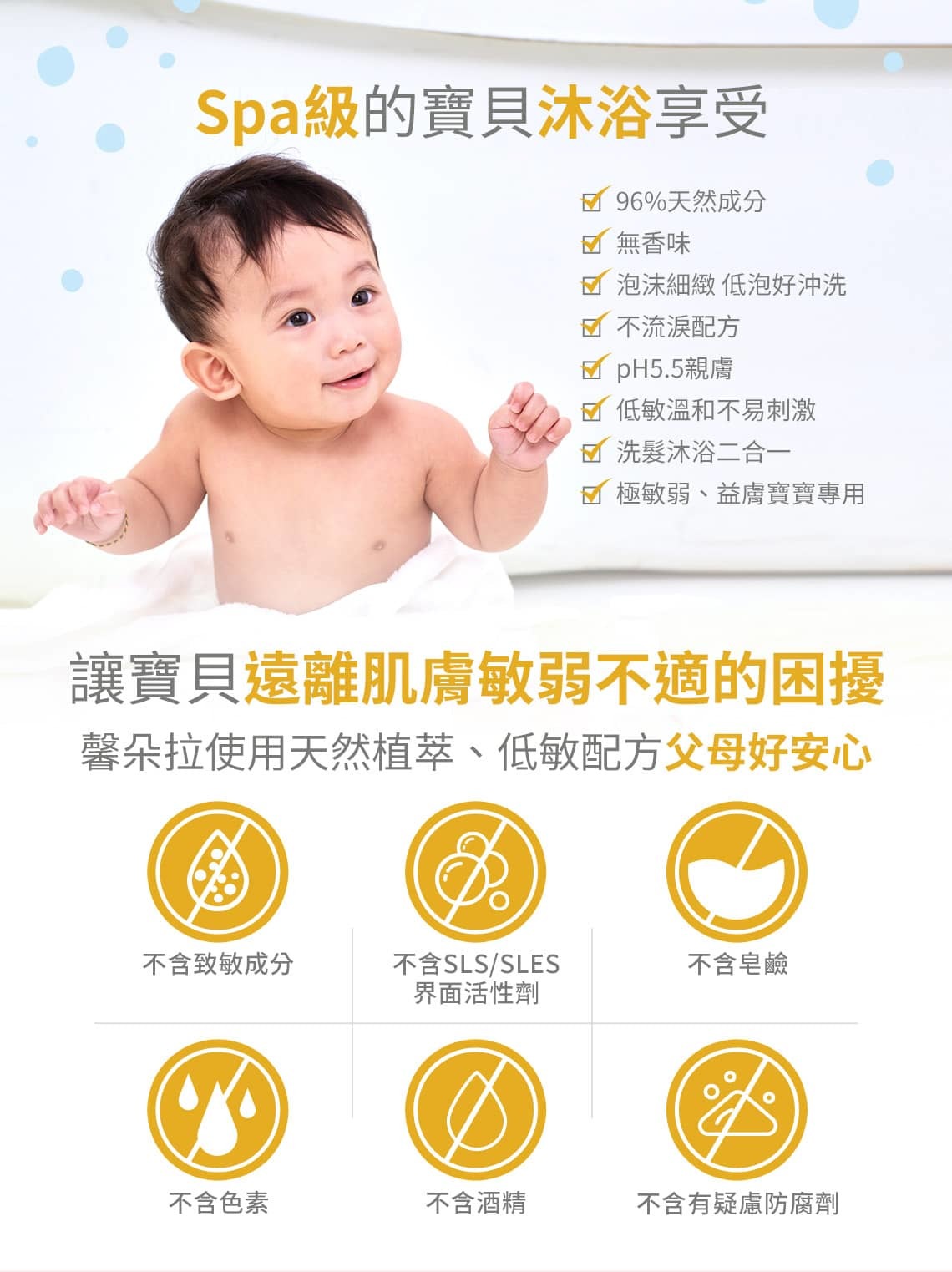 - 适合新生儿、孕妇和哺乳妈妈、G6PD、敏感肌、异位性皮肤炎(湿疹)