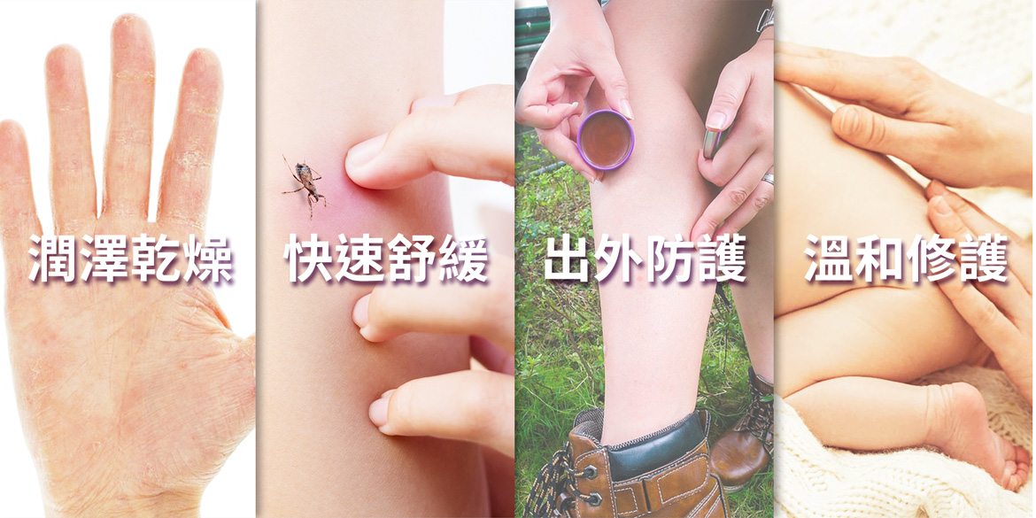 - 保湿、舒缓皮肤干痒,也能防蚊止痒