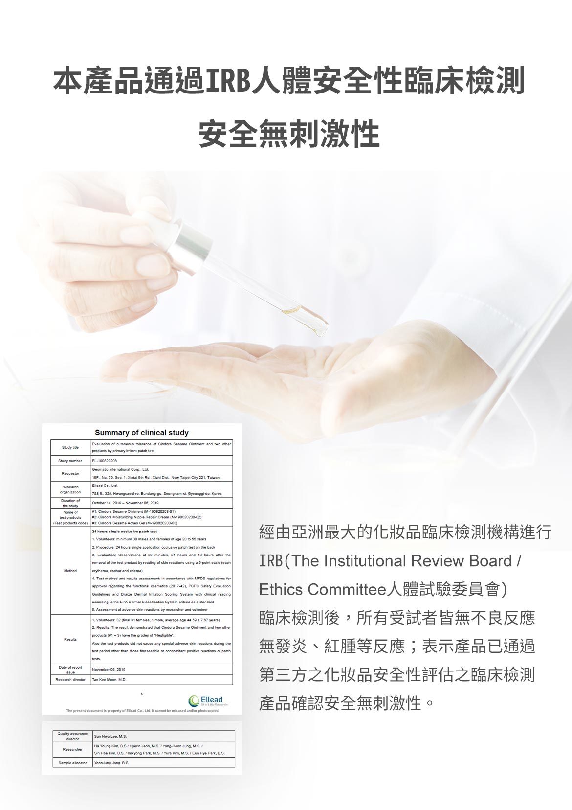 -通过IRB人体安全性临床试验,确认产品安全无刺激性